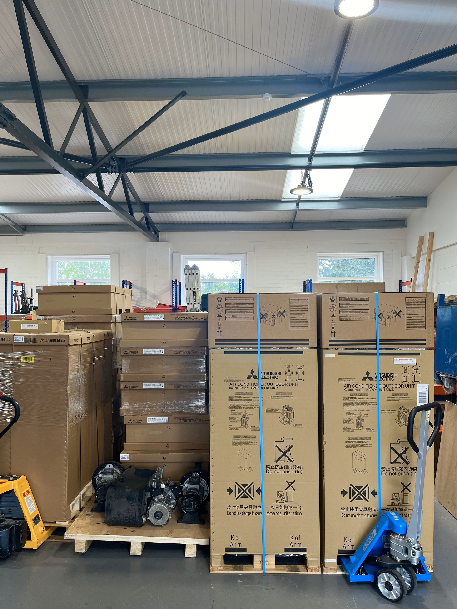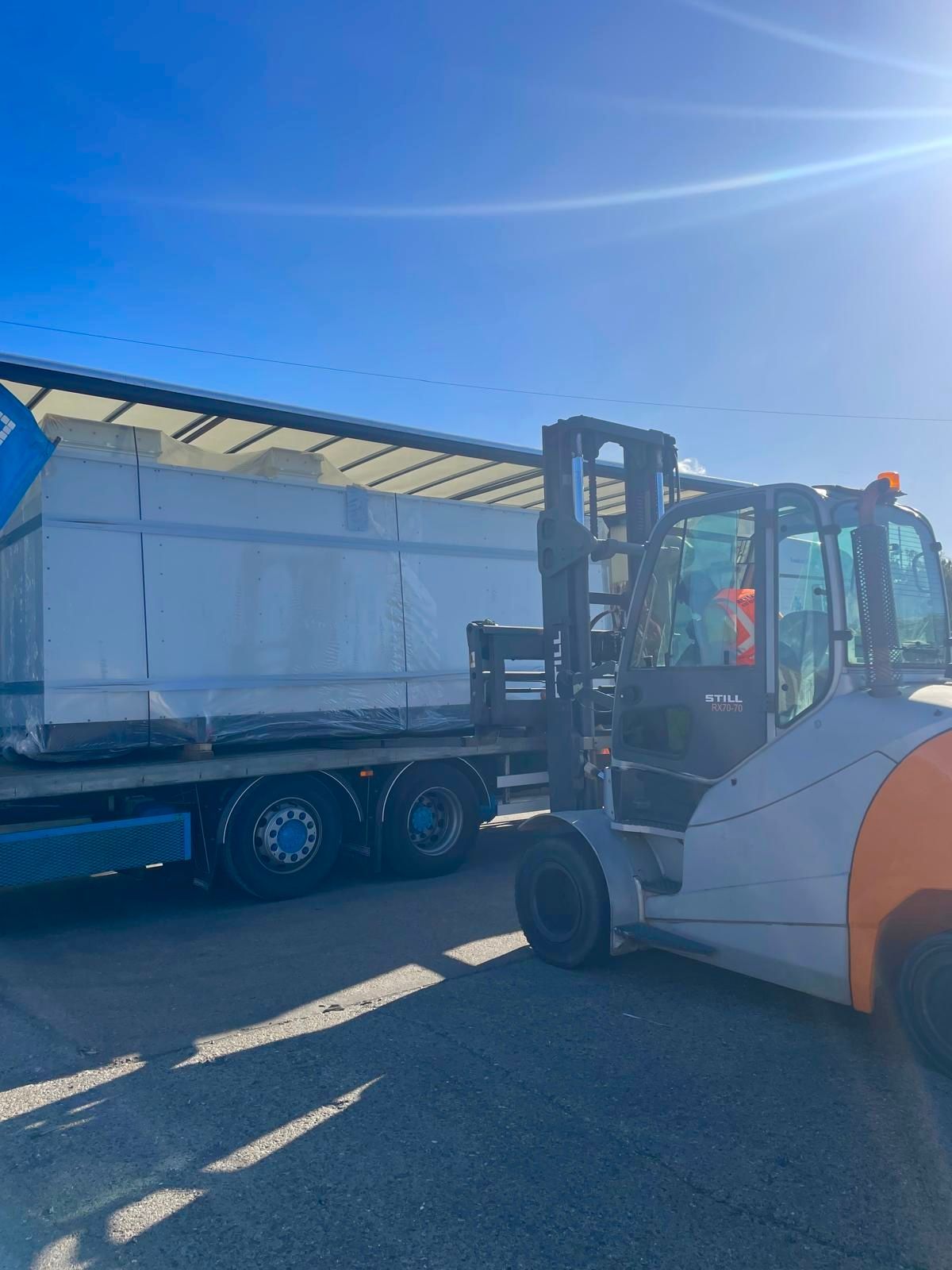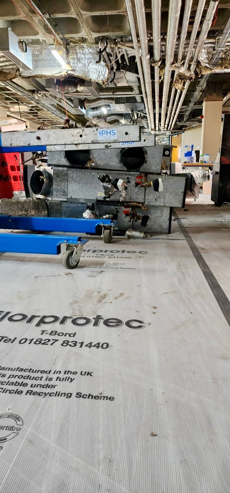 PHS offloaded 12no. sectional Air Handling Units using a forklift and lifted them into a first floor plantroom through an opening where the team accepted the sections and positioned them, the operations were carefully planned, managed and completed by our experienced multi skilled plant handling lift and shift team.