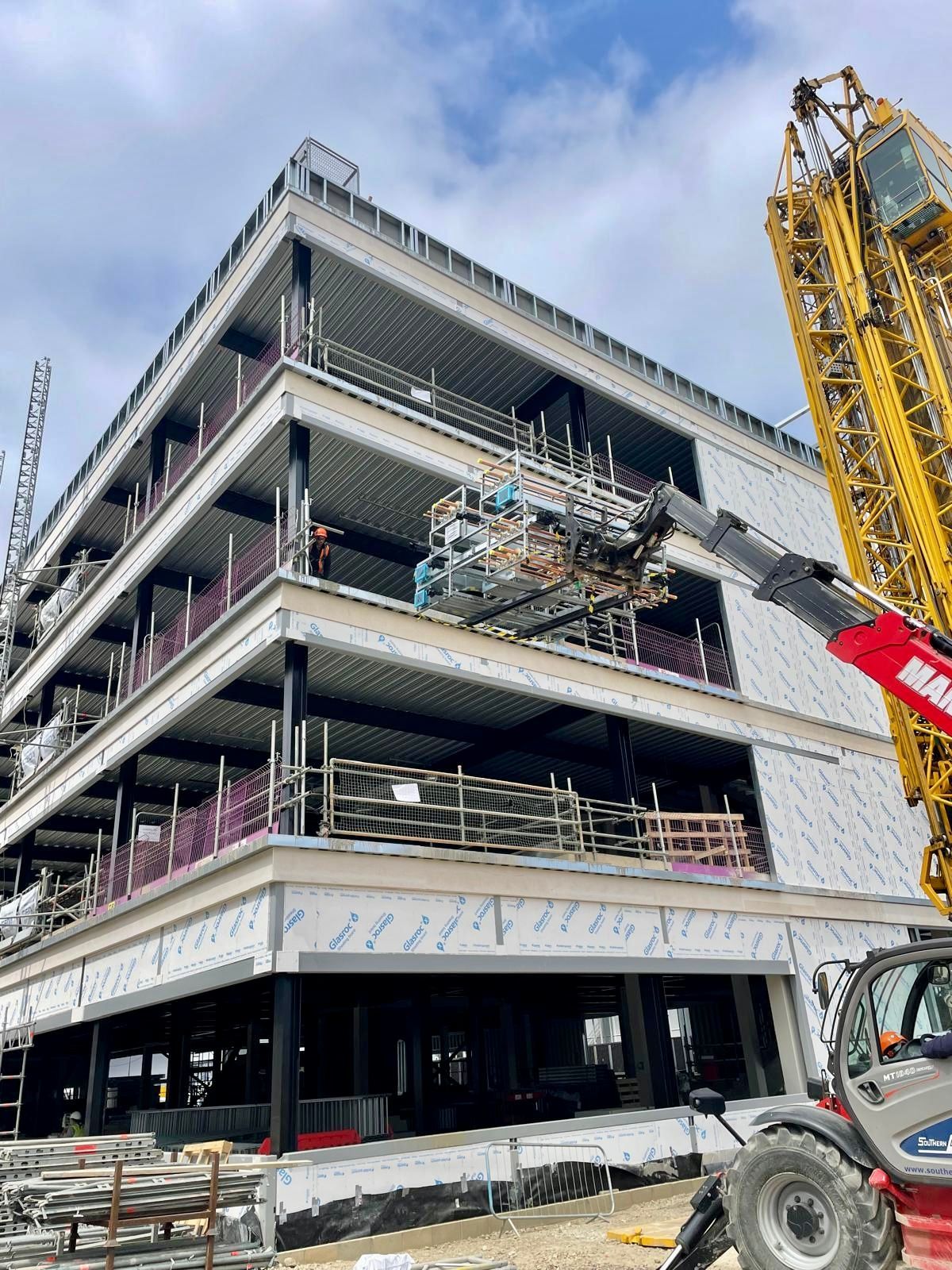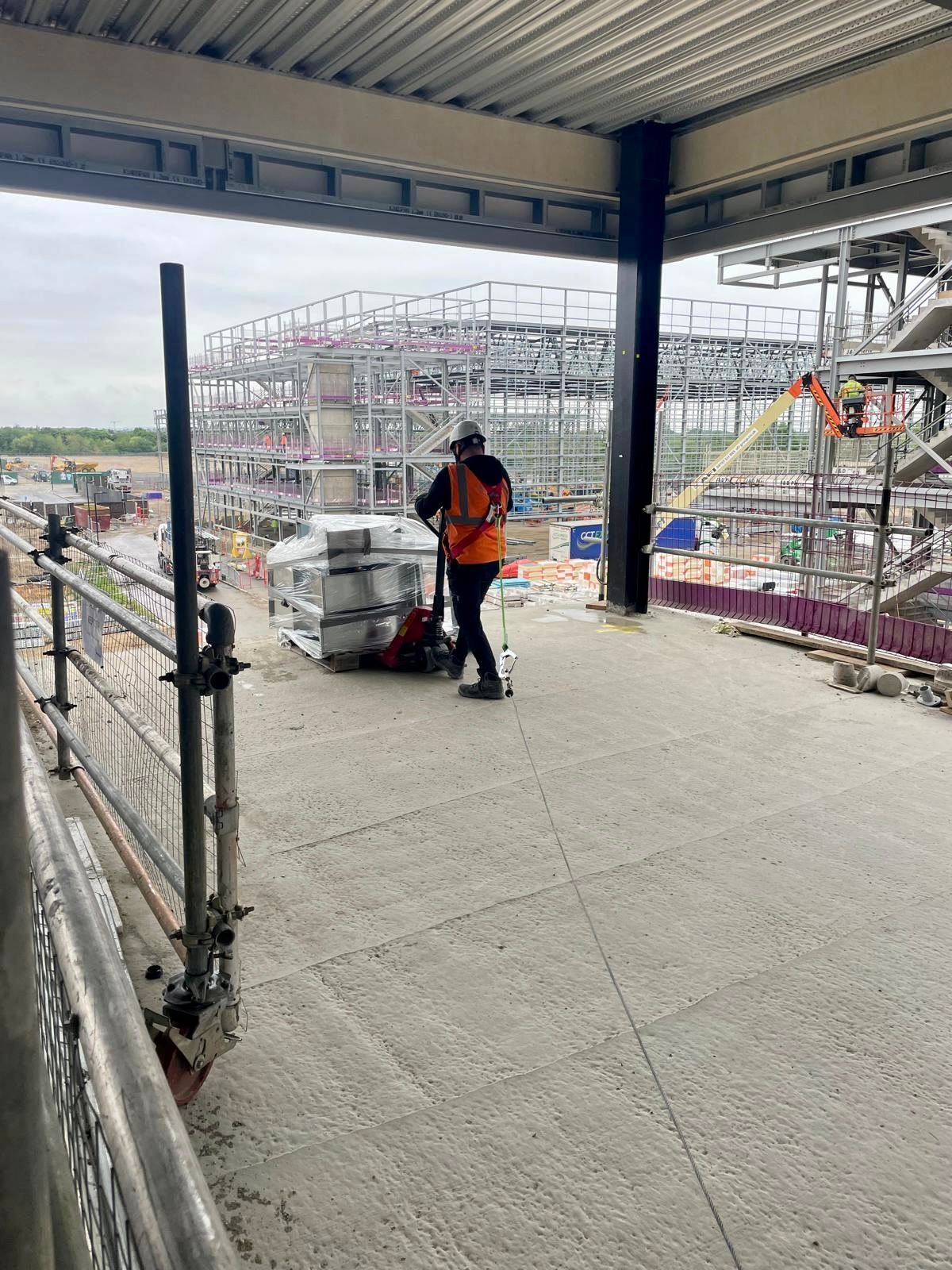 Coordinated by our PHS Logistics Manager all M&E material were offloaded, handled and distributed to the various level over 12 stages of the 22-acre site using our tele-handler, with over a thousand deliveries of items including Air Handling Units, switchgear, modules, ductwork, attenuators and containment, this was achieved by establishing effective forward planning and infrastructure, implementation of processes and delivery of services between the PHS team and other contractors. The key requirement was to facilitate the movement of materials and associated plant/equipment to their respective work areas safely and effectively.