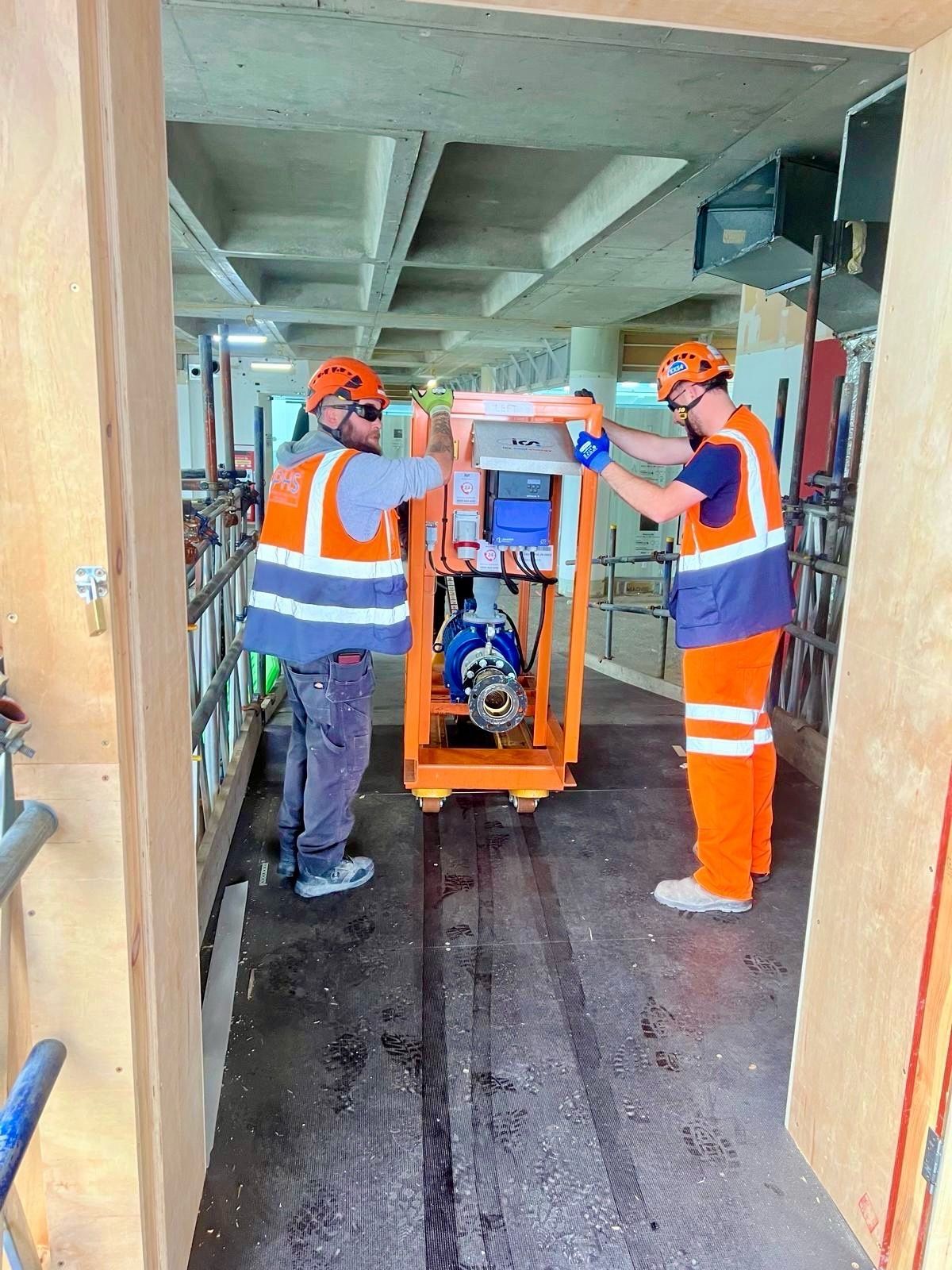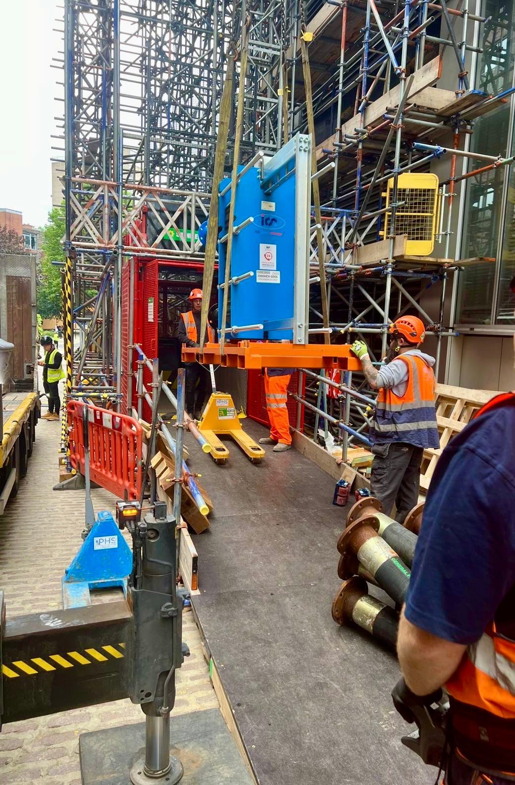 Working with our clients DFMA team, the PHS team installed all the major M&E plant items and prefabricated modules for this new build in the heart of London, installing 4000kgs Pump Skid, Air Handling Units, Switchgear, 8200kgs Transformers, Buffer Vessels and Sprinkler Pumps to the basement levels, prefabricated multi-service Riser module, some weighing up to 7500kgs, throughout the buildings 13 floors and Air Source Heat Pumps, Air Handling Units, 9500kgs Generator and Horizontal Pipe Modules to the roof levels, all the operations were carefully planned, managed and completed by our experienced multi skilled plant handling lift and shift team.