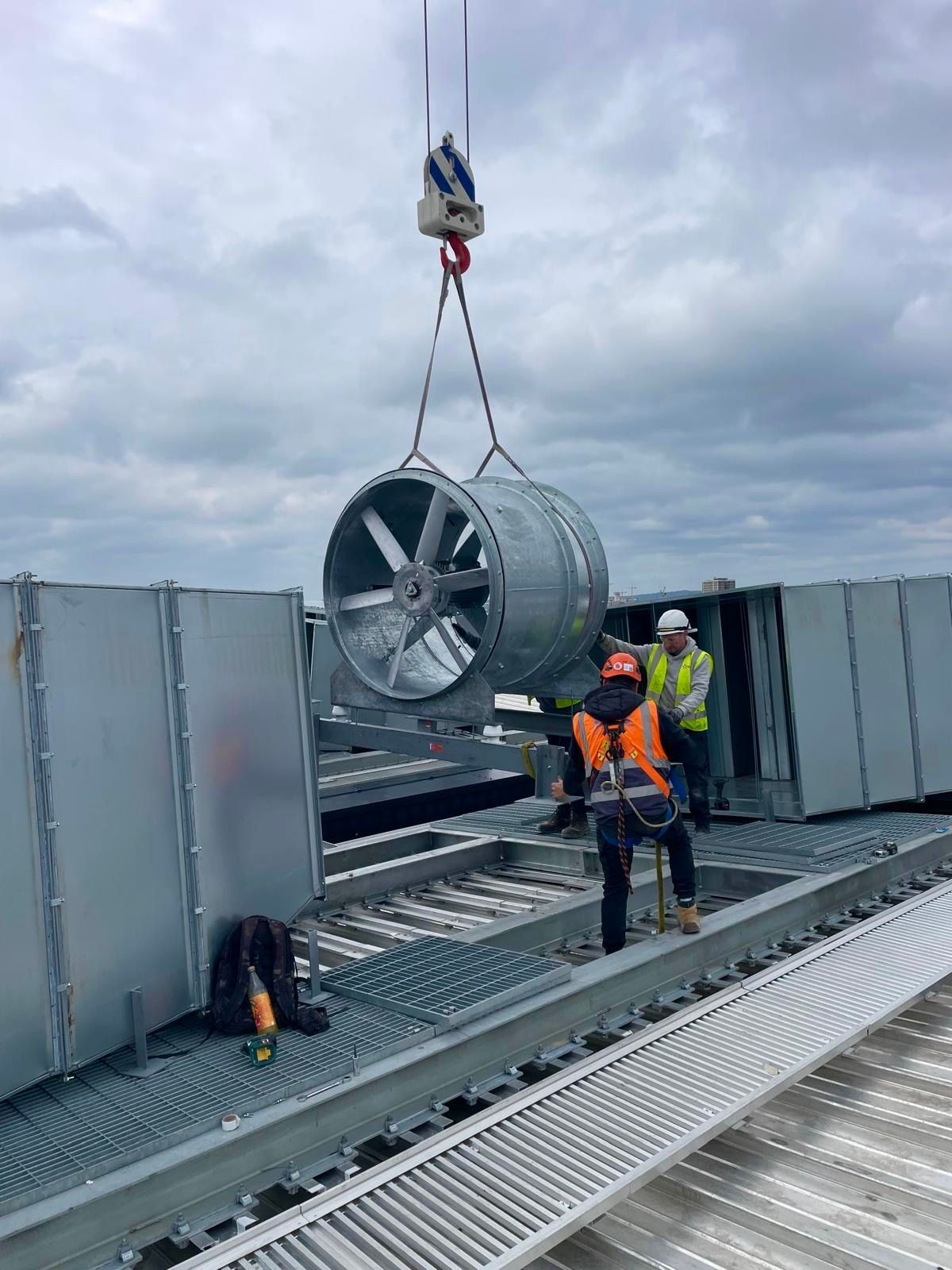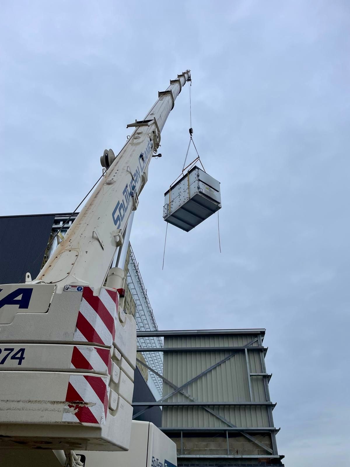 PHS also supplied over 50 contract lifts for the major plant items, smoke extract fans and PV panels, all lifts were carefully planned, manged and complete by our experienced plant handling lifting team.